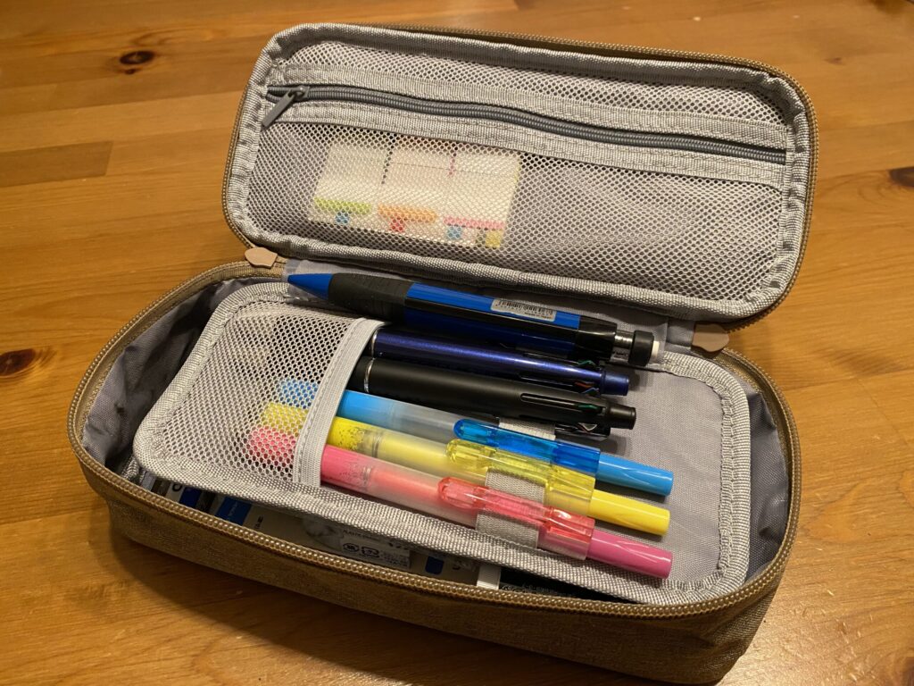 私は、筆記用具一式はもちろん、定規、付箋、メモ、ウェットティッシュ、薬、各種会員カードなどなど、いろいろ入れて常に持ち歩いていました。今でも愛着が湧いて手放せない存在です。