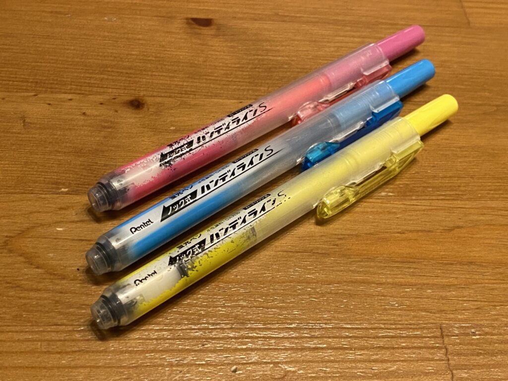 とにかく蛍光ペンは使いまくりますよね!私も一番使った文房具です。