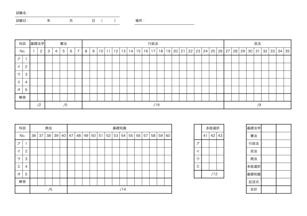 【行政書士試験】模試を何度もやり倒すための解答用紙(ダウンロードフリー)